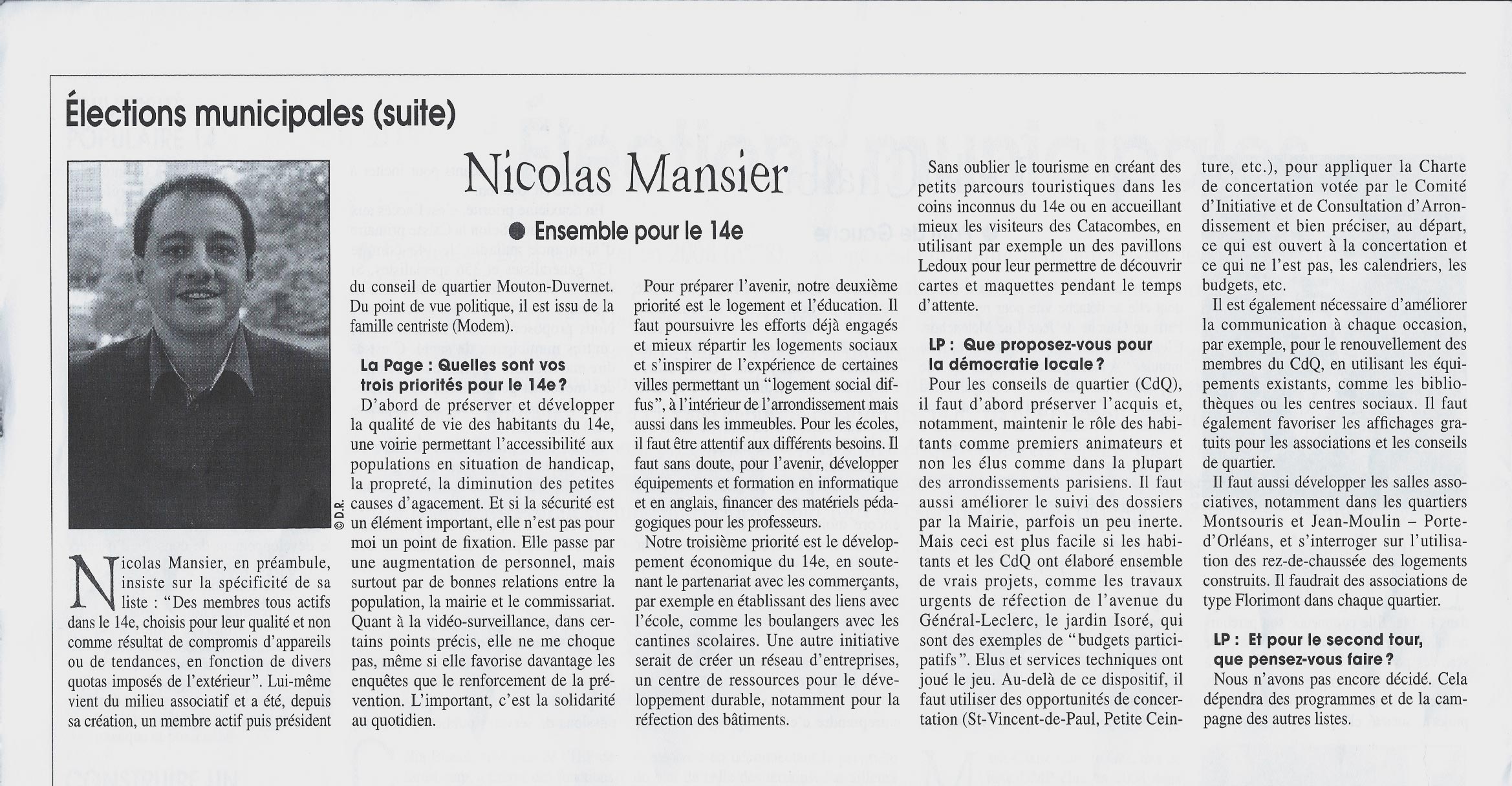 S’inscrivant complètement dans cette démarche, la liste « Ensemble pour le 14ème » rassemble, sans pression d’appareils de partis, des citoyens et des citoyennes libres, amoureux du 14ème arrondissement.